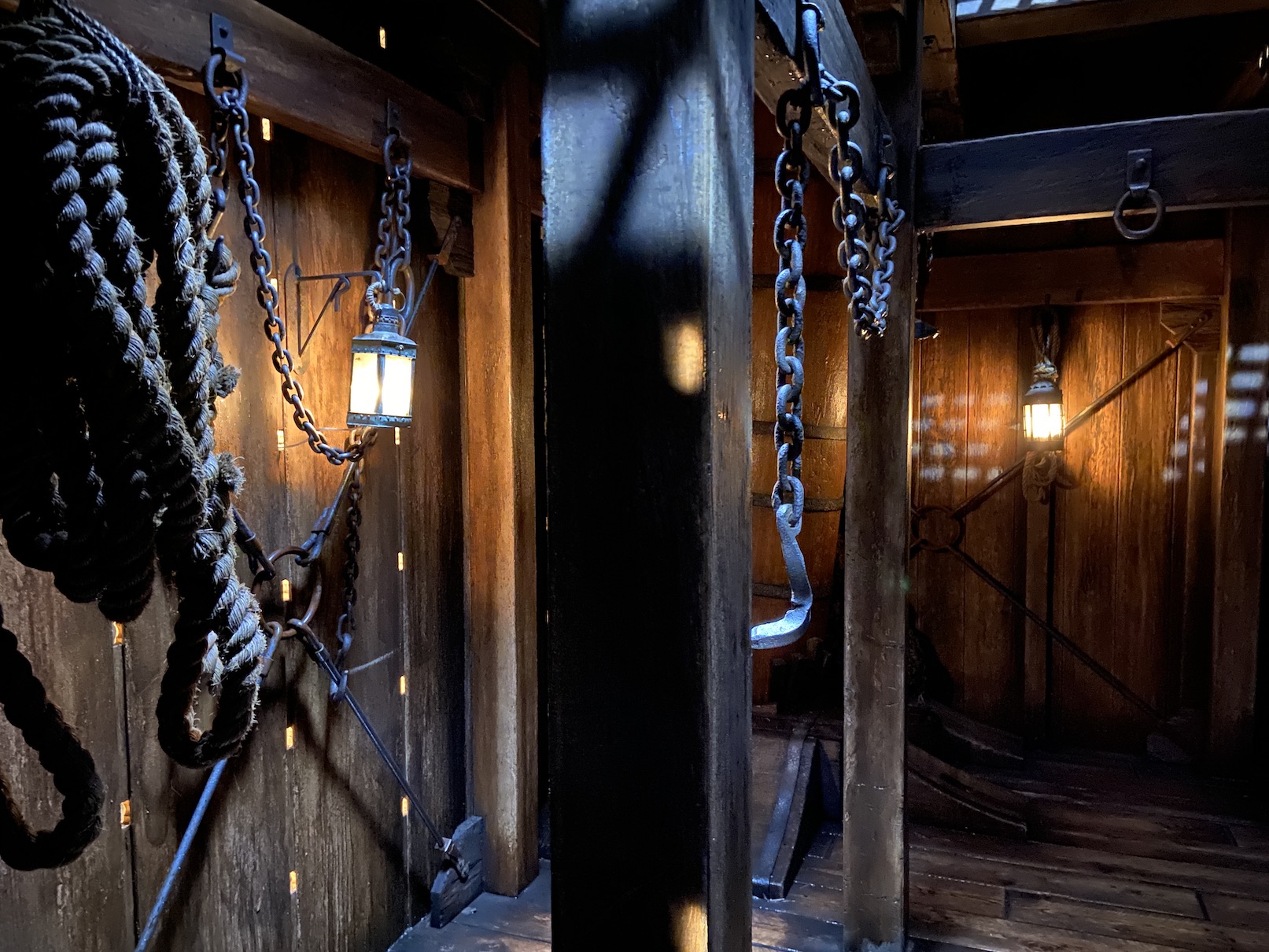Fjerdan prisoner transport, Shadow & Bone. Ship set on gimbal, with SPFX sea washing in.