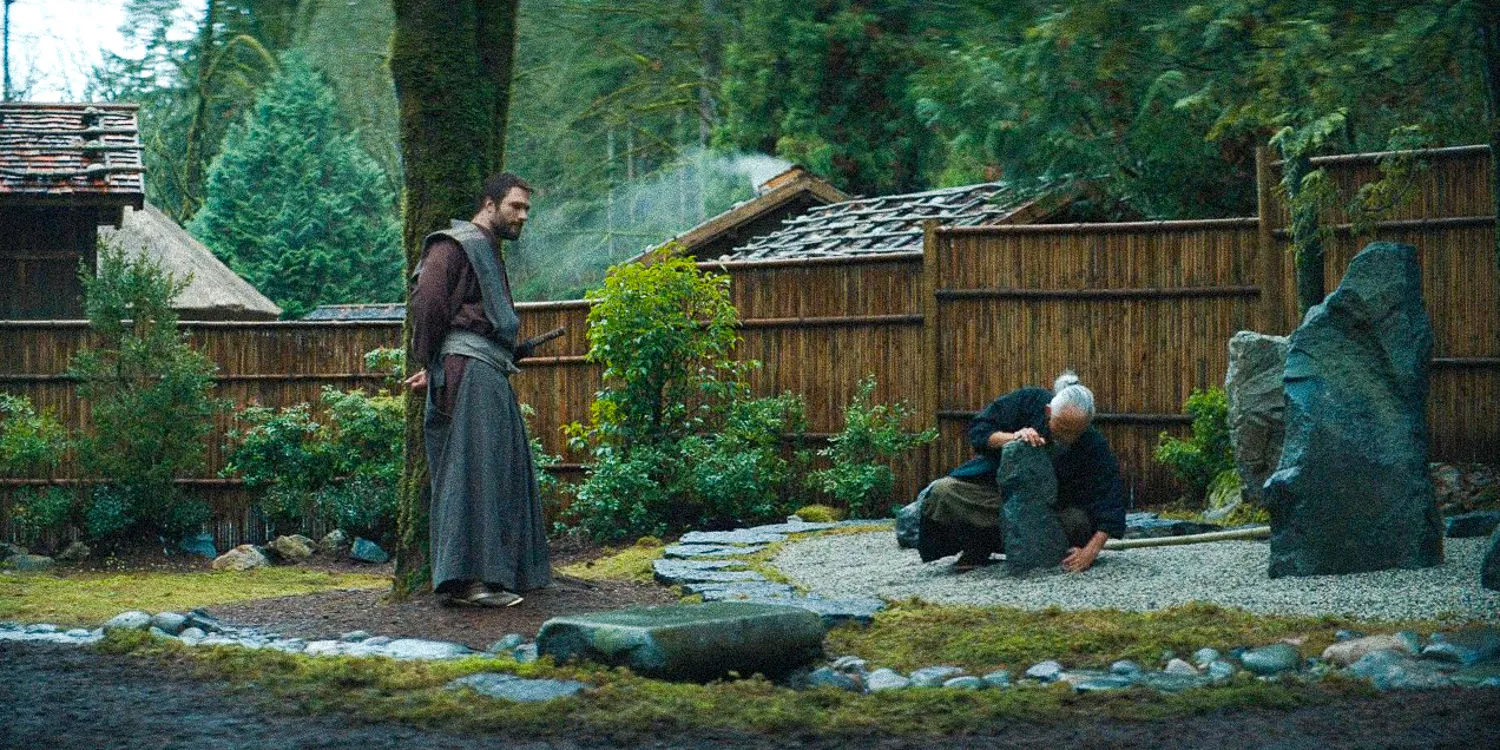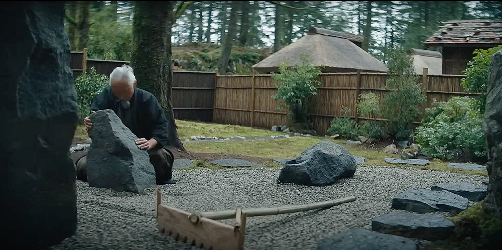 During rehearsal for this scene, Hiroyuki Sanada described the Japanese tradition of trying to land pebbles on the lower beam of a torii gate to make a wish, something he used to do as a boy. This simple childhood recollection became an unscripted but key element of the filmed sequence.