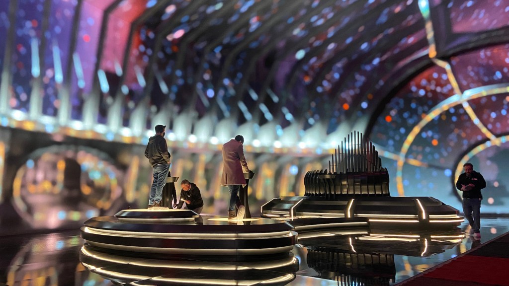 This was an opportunity to significantly build on the volume stage work I’d done on previous shows. We now have it down to one-stop shopping. In addition to the integral scenery and lighting, we built, textured, and lit a camera-ready virtual set.